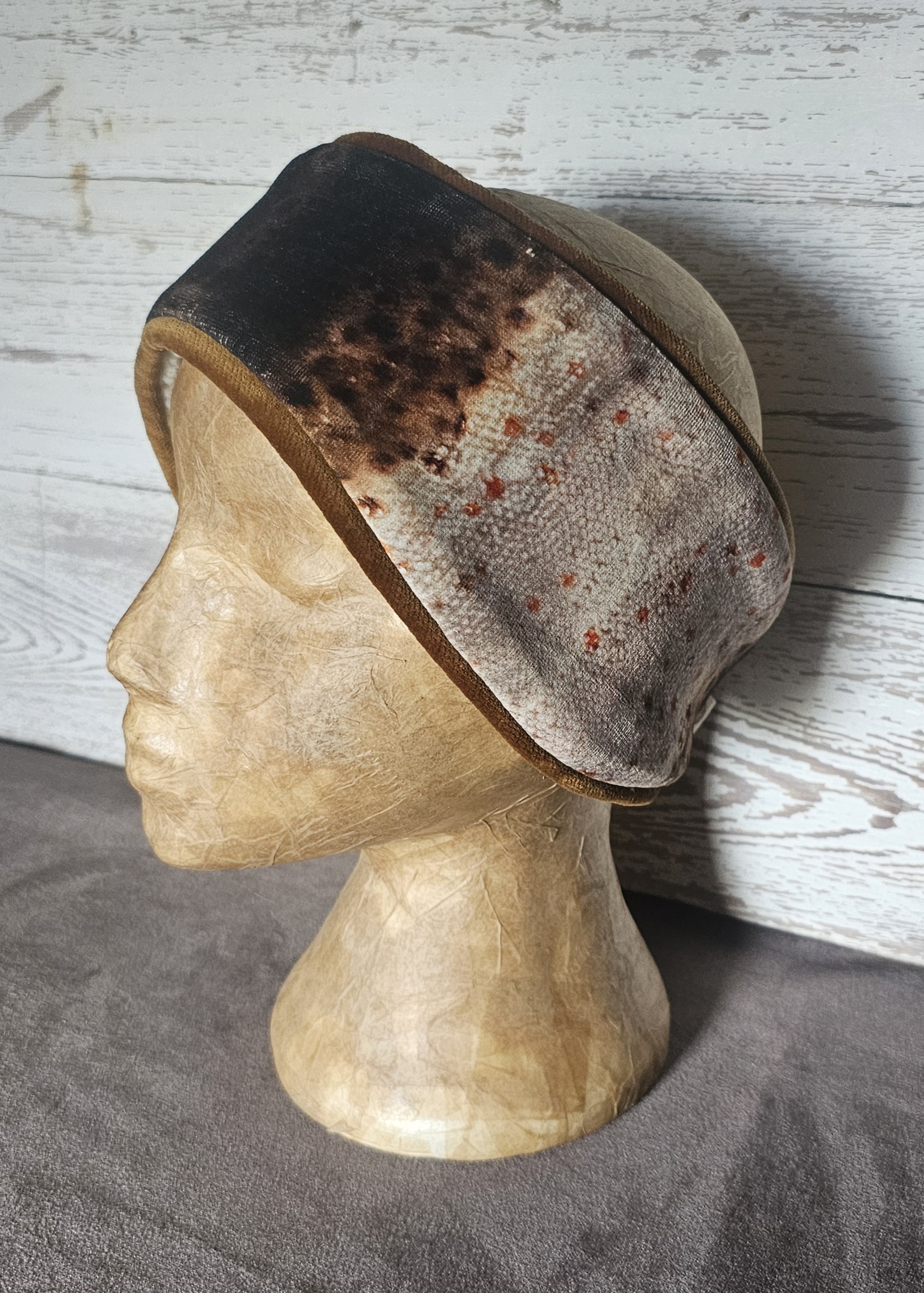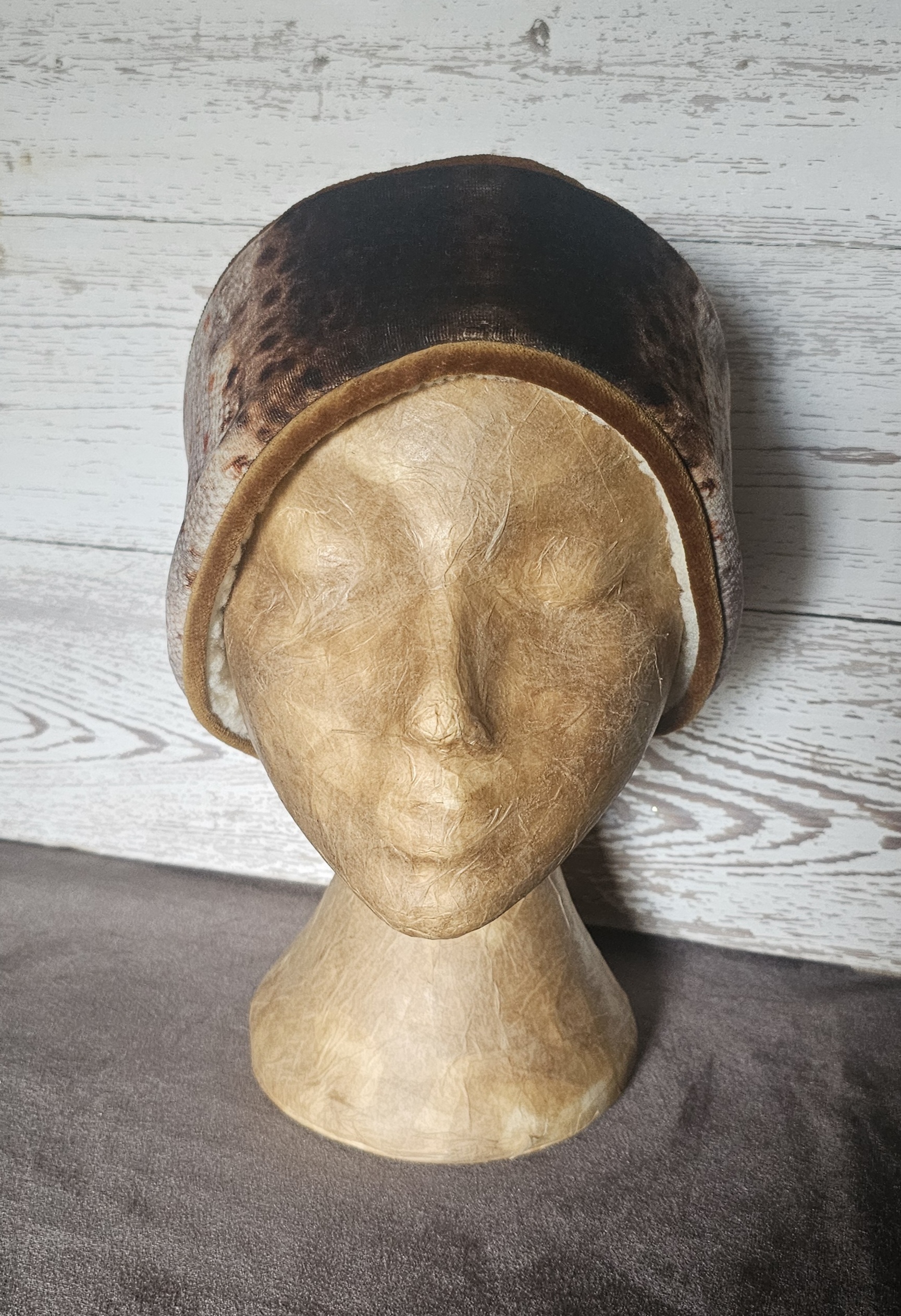 Luxury Velvet Brown Trout Headband (Gold Trim) 56-58cm Vertical