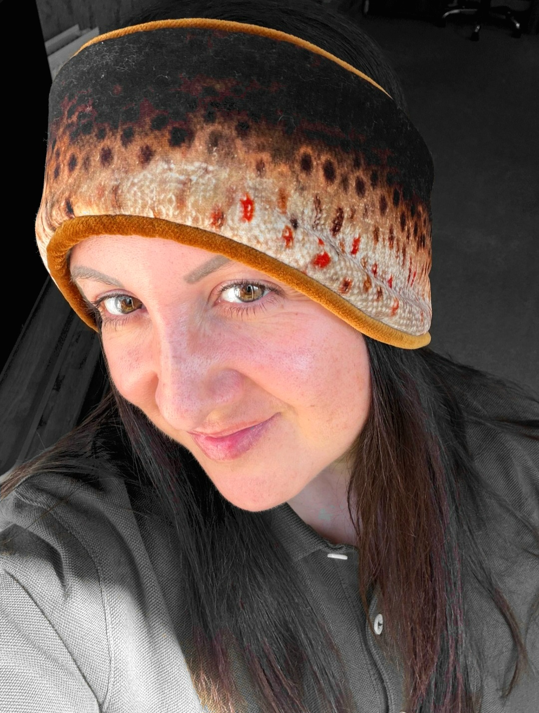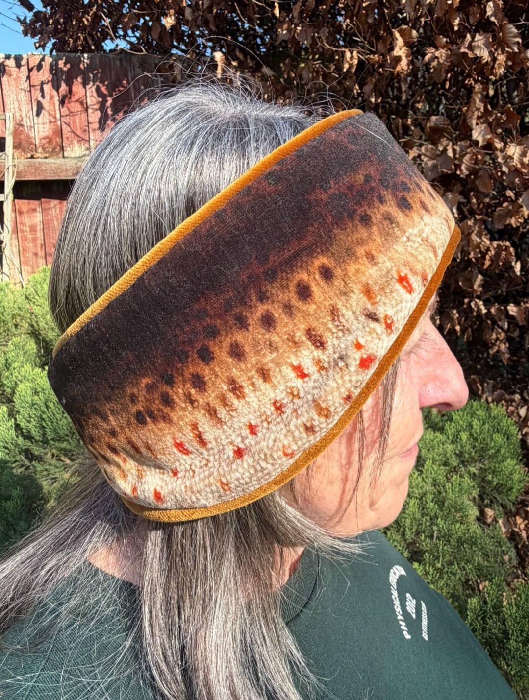 Luxury Velvet Brown Trout Headband (Antique Gold Trim ) 56-58cm